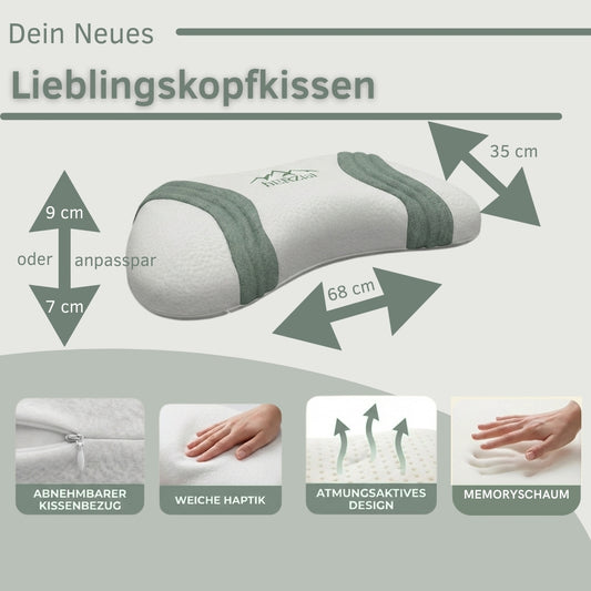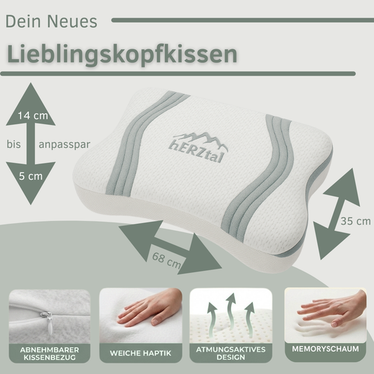Unser Anschmiegsames: hERZtal Orthopädisches Memory-Schaum Kissen | Druckentlastend & Atmungsaktiv